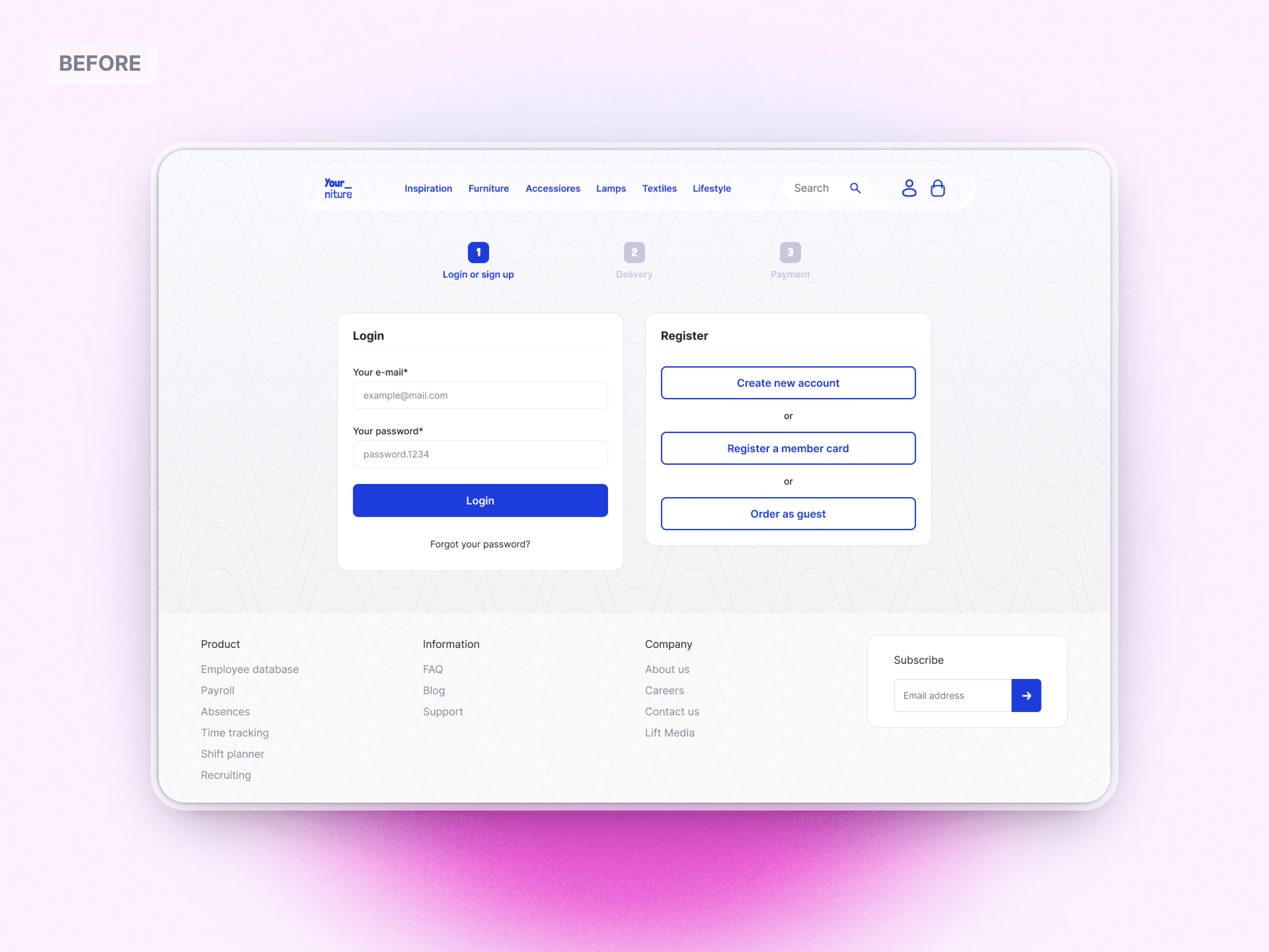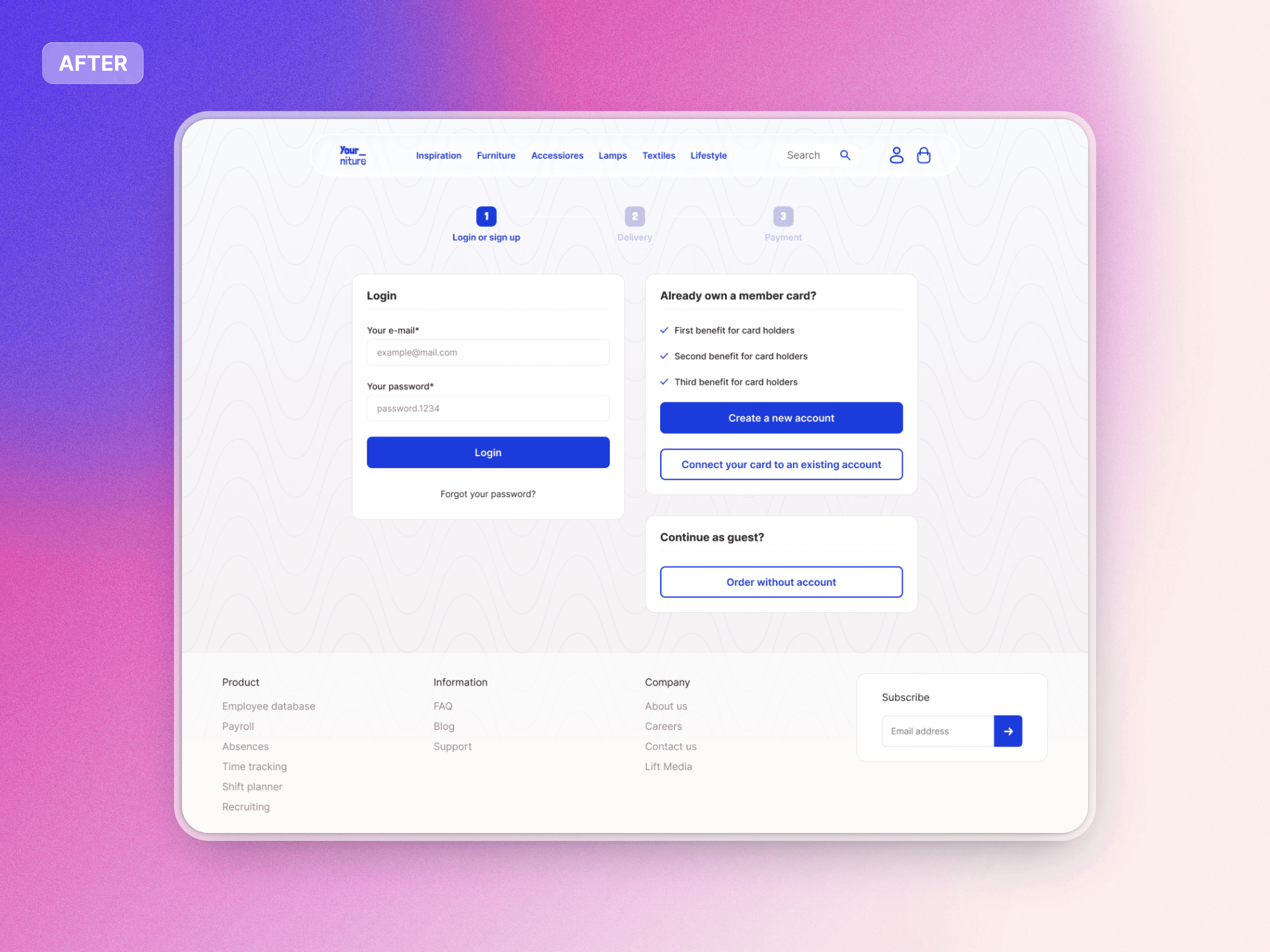 Promoting Account Creation: The new design prominently featured a clear, benefit-oriented list (e.g., "Track your order," "Save your favorites," "Faster future checkouts") to articulate the value of registering an account. This was intended to directly increase the user registration rate.